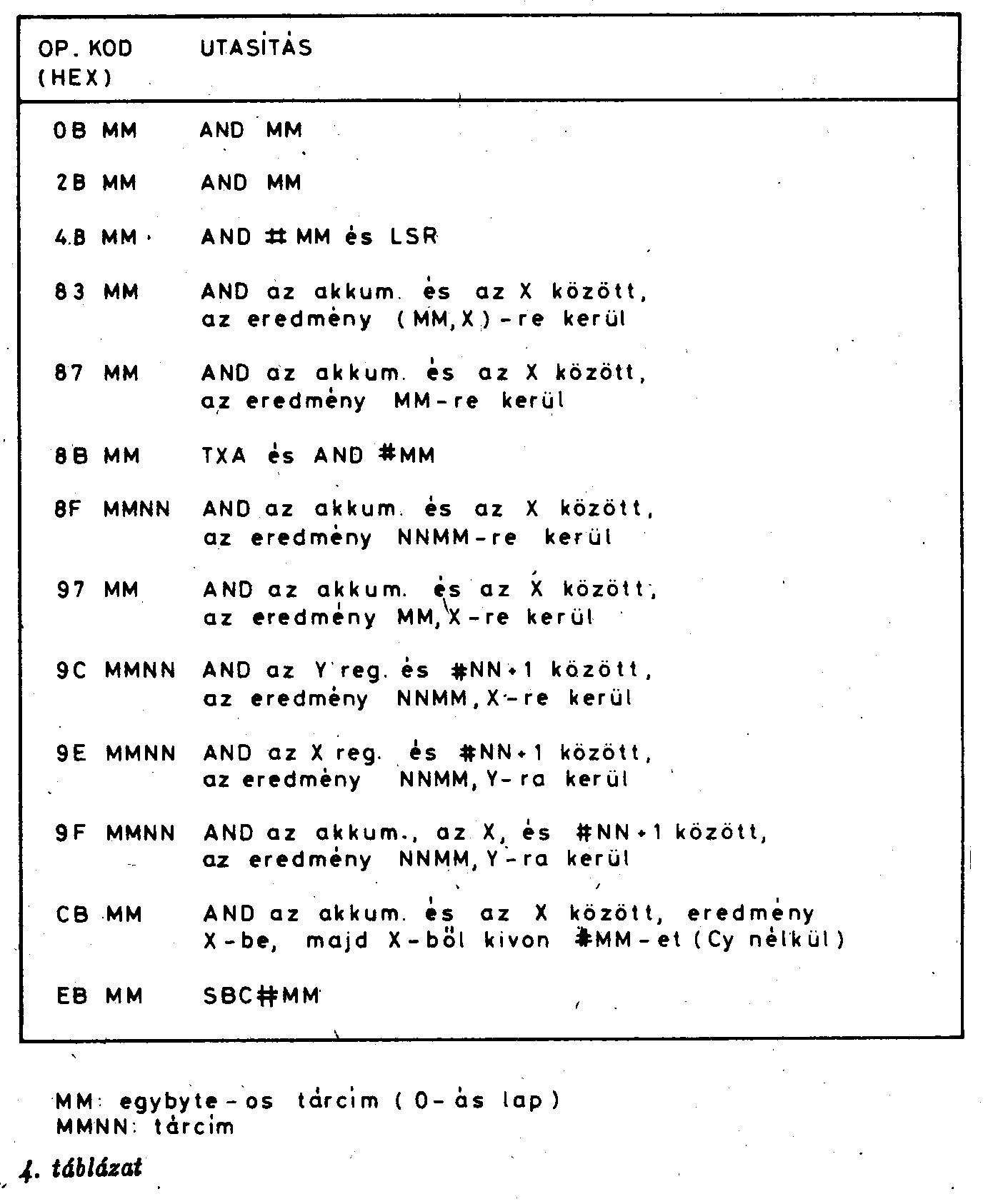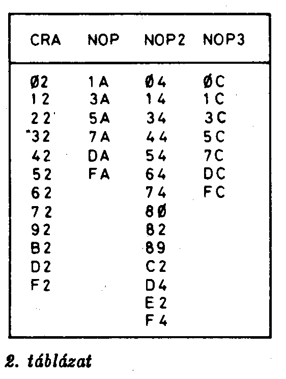 Ezen k6dok végrehajtásának hatása különböző - bár vannak hasonl6ak -, így célszerűen egyenként tüntettük fel azok műveleteit.